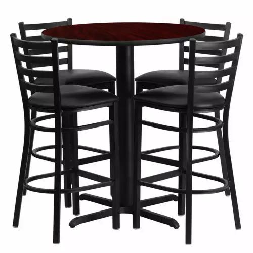 Modern Comfort | Black Vinyl Barstools with Round Mahogany Laminate Table Set | Size 30"