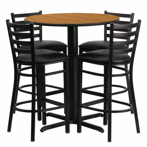 Modern Comfort | Black Vinyl Barstools with Round Natural Laminate Table Set | Size 30"